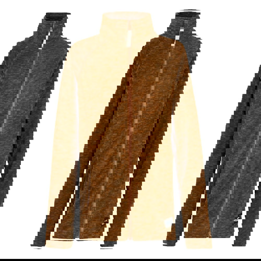 This full zip fleece jacket is made from 70% polyester and 30% recycled polyester, with a peached finish and a plain design. It has a standing collar and long raglan sleeves for a clean, practical shape.