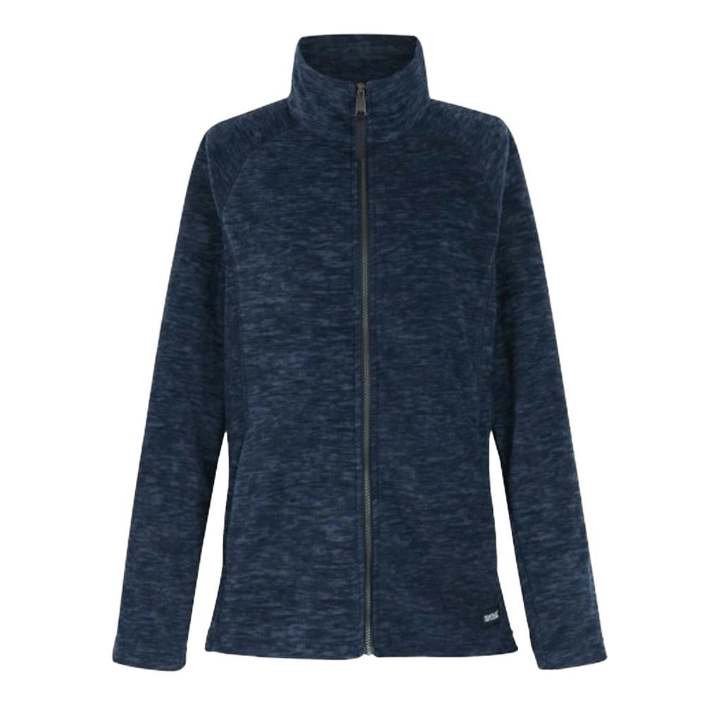 This full zip fleece jacket comes in navy with a plain design and a peached finish. It is made from 70% polyester and 30% recycled polyester, with a standing collar and long raglan sleeves for a clean, sporty shape. Two side pockets with zip fastening keep small essentials secure, making it a practical layer for everyday wear.