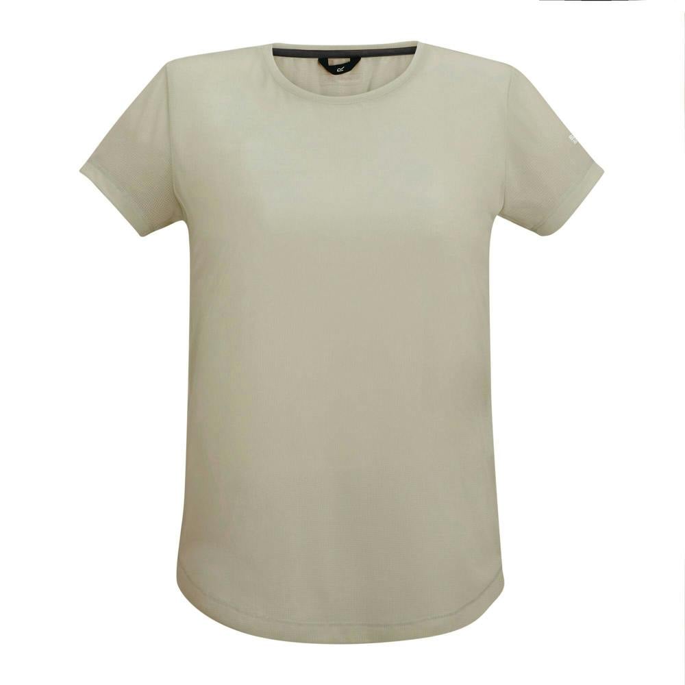 This short-sleeved T-shirt is made from mesh material in a 70% polyester and 30% recycled polyester blend. It has a crew neckline and a logo design, finished in the colour parchment.