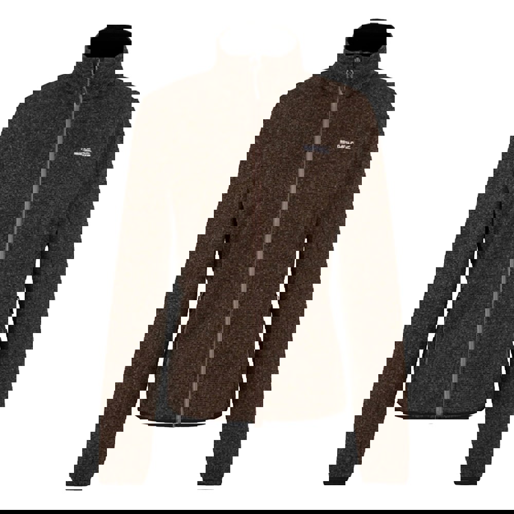 This full zip fleece jacket is made from 70% polyester and 30% recycled polyester, with a brushed-back finish and soft-touch feel. The knit-effect marl construction keeps the look simple with a plain design, while the standing collar adds a clean, structured neckline.