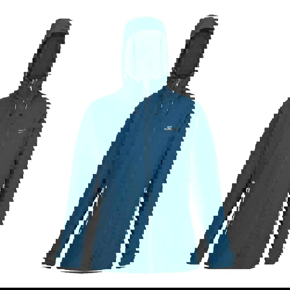 Regatta Women’s Okara Waterproof Jacket in Moroccan Blue is made from recycled polyester with a ripstop, stretch fabric. The plain design is finished with a logo and includes Isotex 15000 fabric technology with a DWR finish. Breathable, lightweight and durable, it is also water repellent, waterproof and windproof.