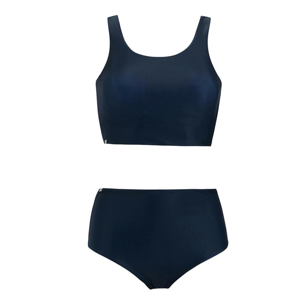 The bikini top has a round neckline and a pull-on fastening. The bottoms are finished with an elasticated waistline for a secure pull-on style. A flattering fit completes the set.