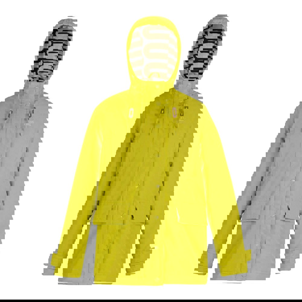 Made from 100% polyester, this Regatta women’s Orla Kiely jacket comes in a plain finish and a mid length cut. It has a hooded neckline with a grown on hood and drawstring adjustment, plus extra long sleeves with adjustable cuffs secured by a hook and loop strap.