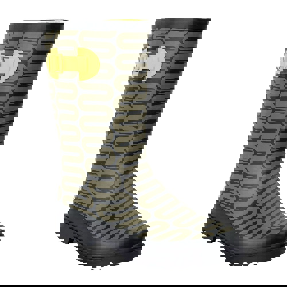 These Regatta women’s Orla Kiely Rain Cloud wellington boots come in olive with an all-over print and logo detail. The mid-calf cut and round toe create a classic silhouette, finished with a flat heel and pull-on fastening for straightforward wear.