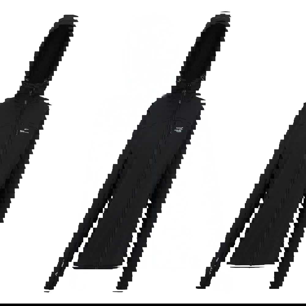This Regatta Ossek soft shell jacket is made from a woven stretch softshell with a printed design. The 300gsm construction is finished with breathable, wind resistant performance and a durable water repellent finish. A grown on hood with adjusters adds practical coverage, while the full zip fastening keeps the front clean and easy to wear.