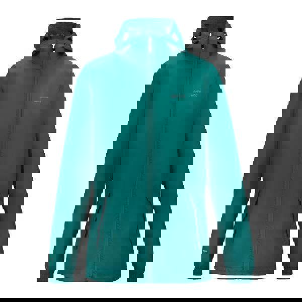 The Regatta Pack It III waterproof jacket comes in Mediterranean green with a plain finish and logo detail. Made from 100% polyamide, it uses Isolite material with Isolite 5000 technology and a 5000g/m²/24hrs rating. The lightweight construction includes taped seams and reinforced areas, with a packaway design for compact storage.