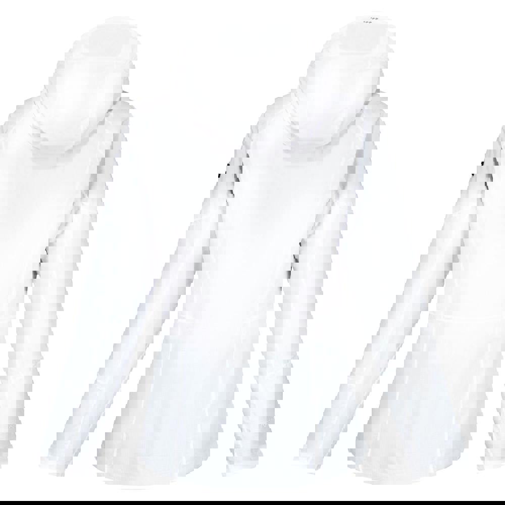 The long sleeves are articulated and finished with touch fastening cuff tabs. A grown-on hood sits with a standing collar and includes a concealed toggle adjuster and wired peak. Underarm zips allow additional ventilation, and two zipped side pockets keep essentials close. The front closes with a water repellent zip.