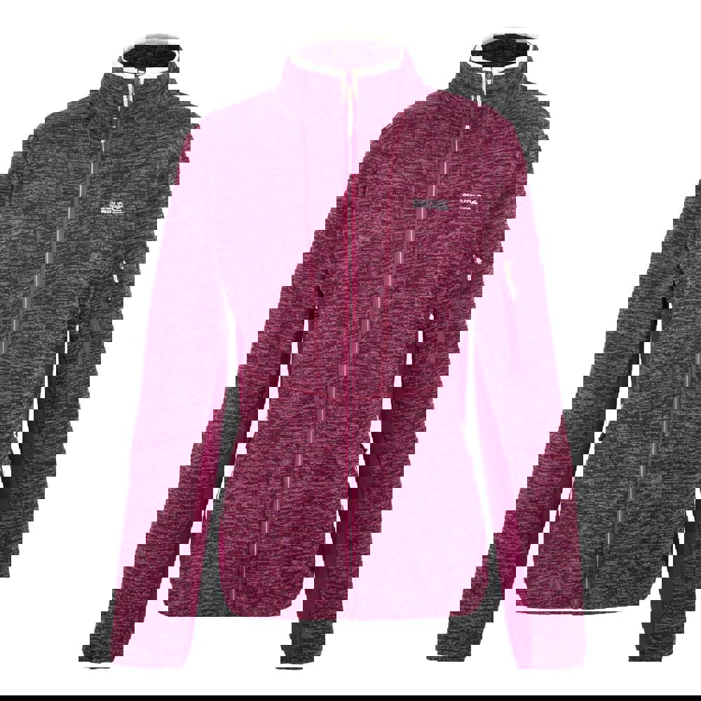This women’s Ralina fleece jacket from Regatta comes in Beaujolais/Light Vanilla with a logo design and a knit-effect finish. Made from a blend of elastane, polyester and viscose, it uses Extol Stretch fleece with a 240gsm weight and flexible fabric technology. A standing collar and long sleeves create a clean, practical shape for everyday wear.