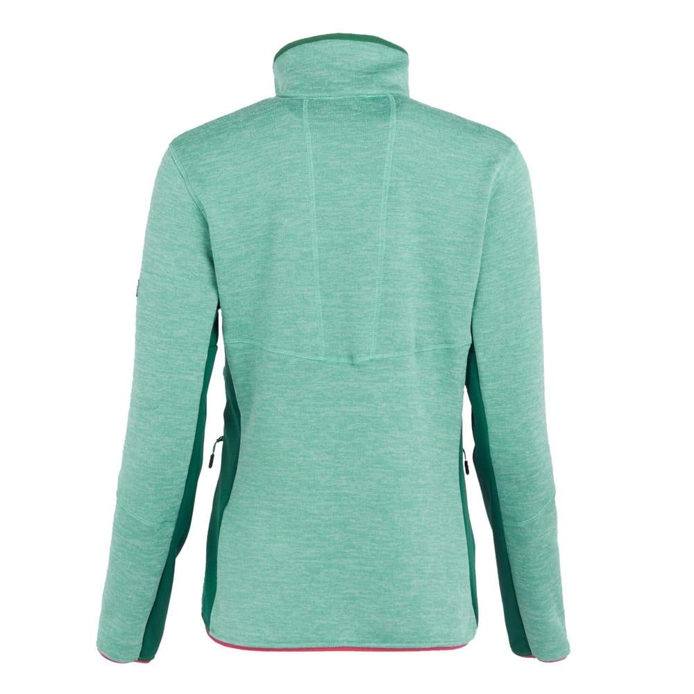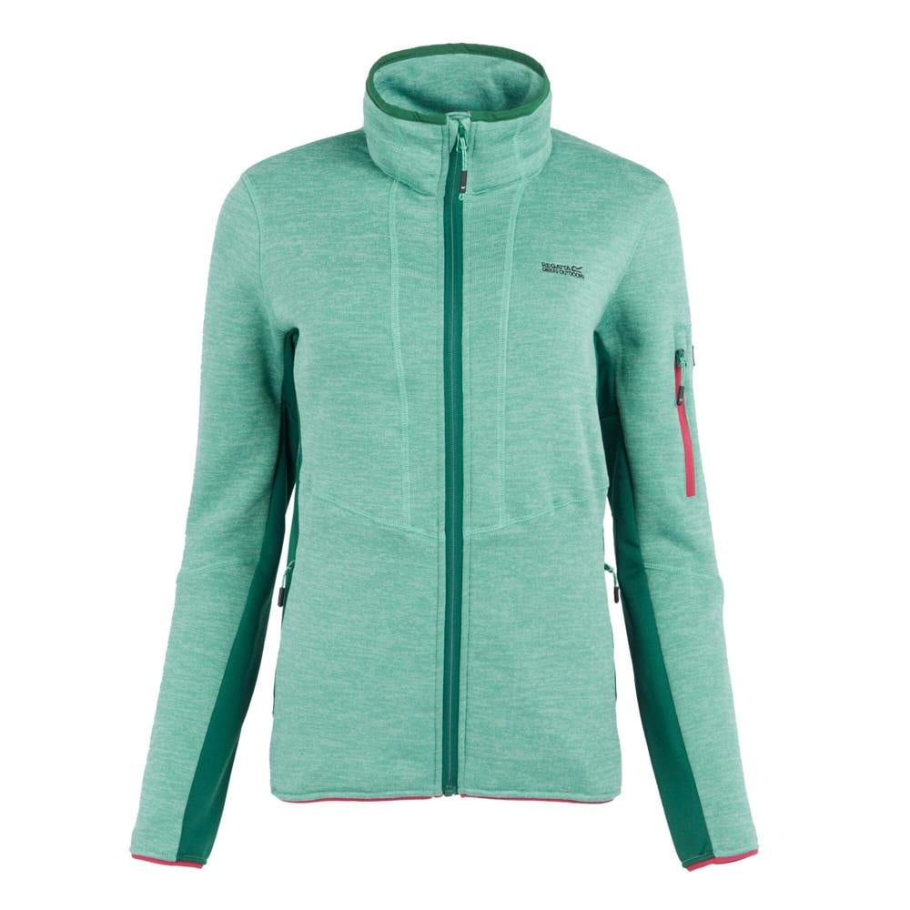 Regatta Ralina fleece jacket in dusty green/rainforest with a knit-effect finish and logo design. Made from elastane, polyester and viscose, it uses Extol Stretch fleece technology for flexible wear. A standing collar and long sleeves create a clean, practical shape for everyday layering.