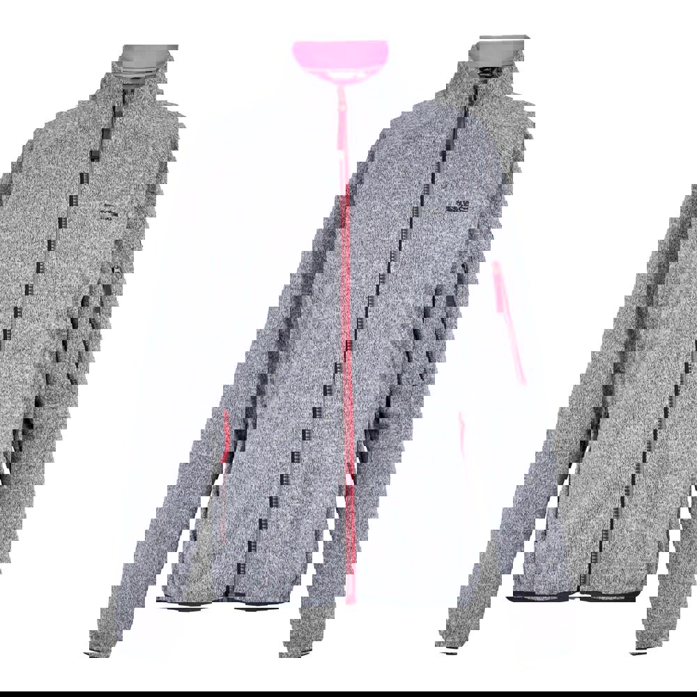 This full zip fleece top from Regatta is made from 100% recycled polyester and finished in white with flamingo pink detailing. It has a high neckline and long sleeves for a clean, practical shape that works well for everyday layering.