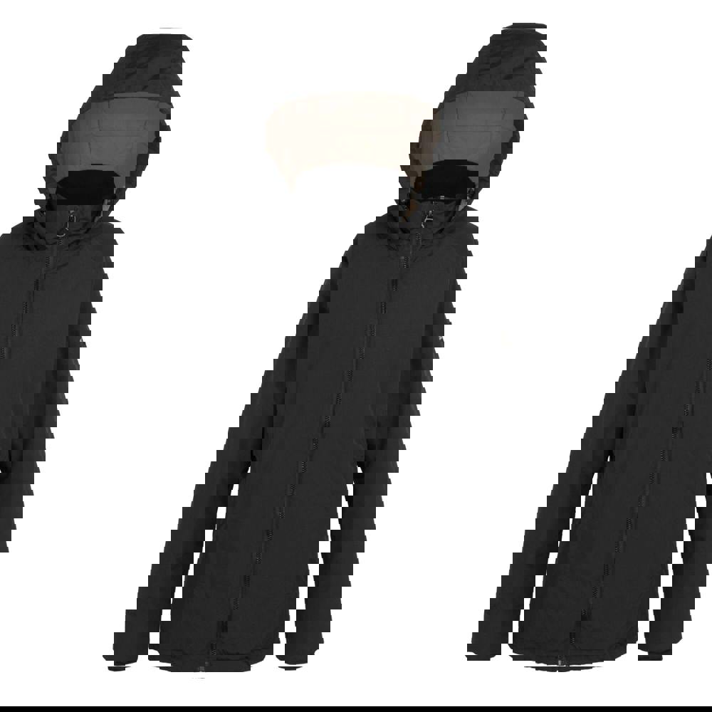 This insulated jacket is made from 100% polyester with stretch for ease of movement. It has a hooded neckline with a concealed, grown-on hood and long sleeves, finished with a full zip fastening. The design includes a logo detail and a pocket layout that combines two lower pockets with an inner zipped pocket.