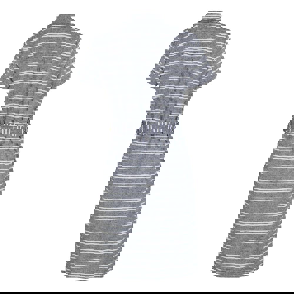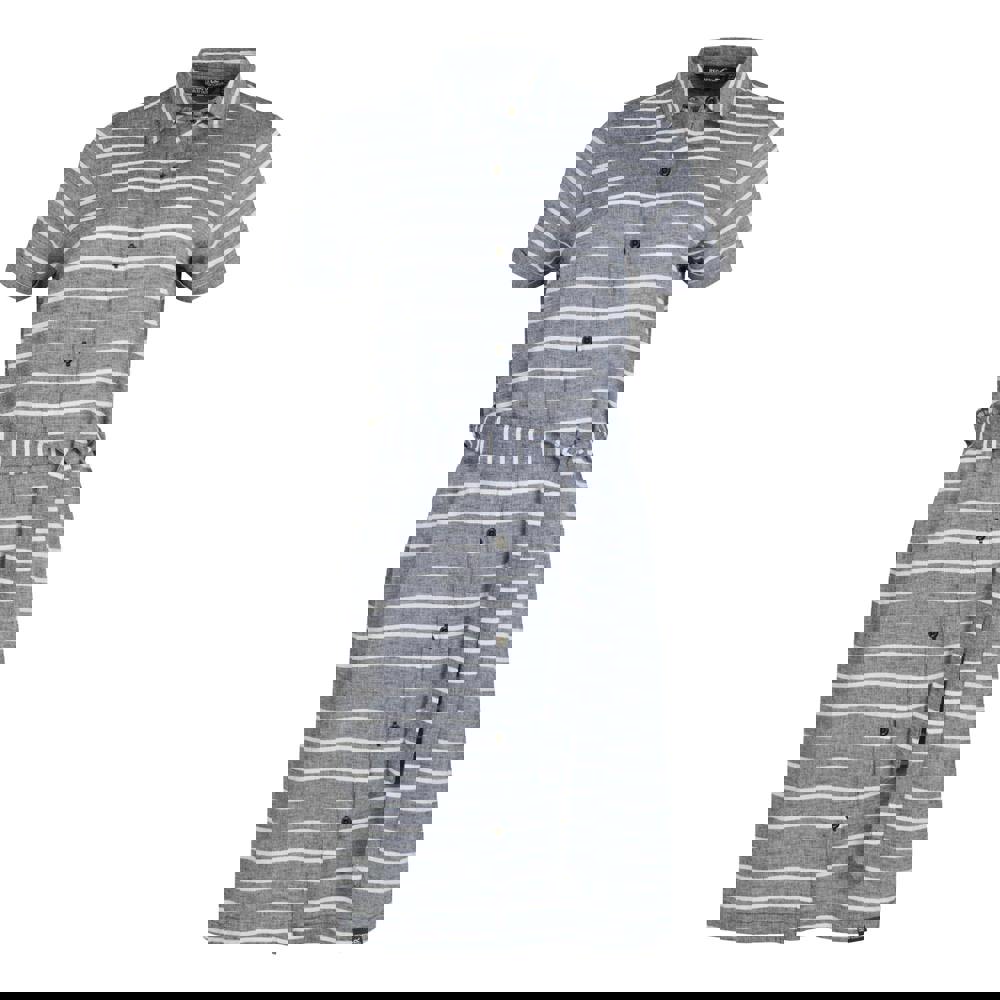 This striped shirt dress is made from a cotton and linen blend, with chambray and Coolweave soft-touch material. It has a button-down fastening and a turn down collar, finished with short sleeves for a clean, casual look.