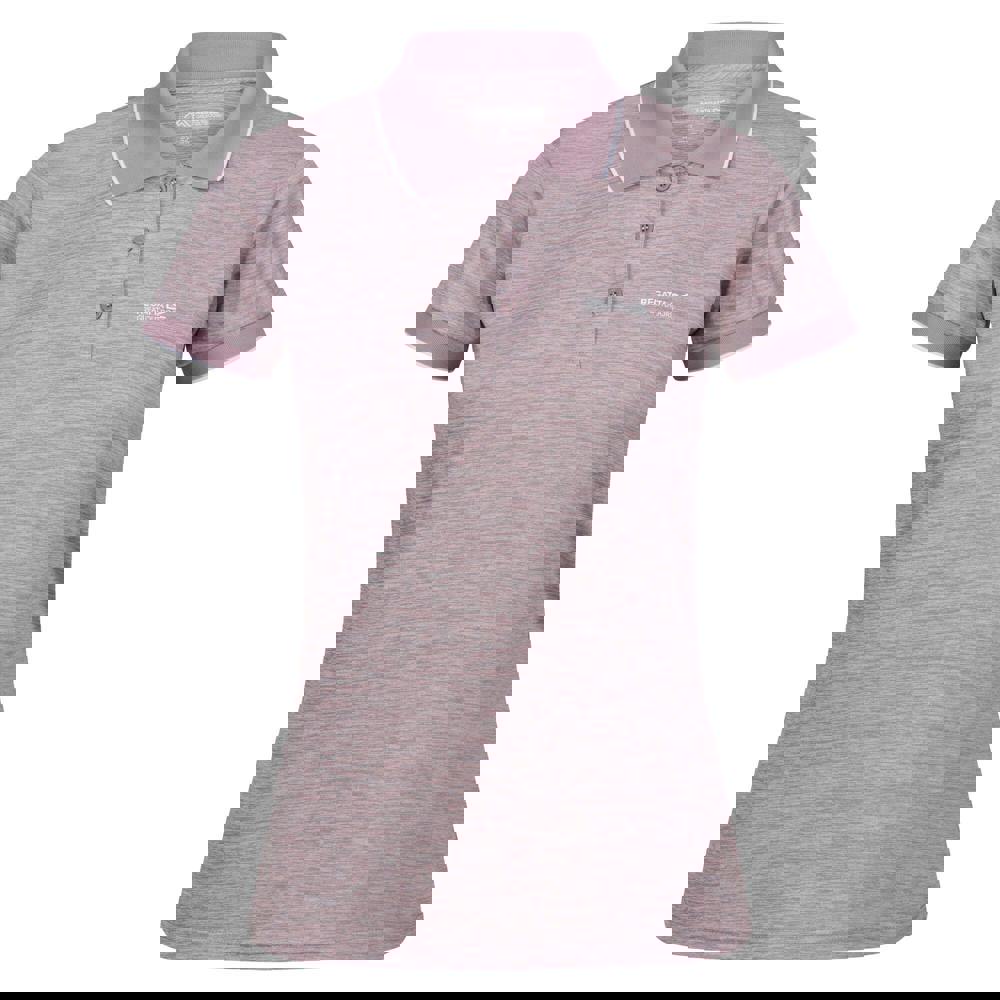Refresh your everyday wardrobe with the Regatta Remex II polo neck T-shirt in heather. Made from 100% polyester jersey with a soft-touch finish, it offers a clean, sporty look with a marl effect and logo detail. A collared neckline with ribbed construction and a button fastening keeps the style classic, while short sleeves and ribbed cuffs provide a neat outline. Cut to a regular length with a regular fit, it suits casual wear and easy layering.