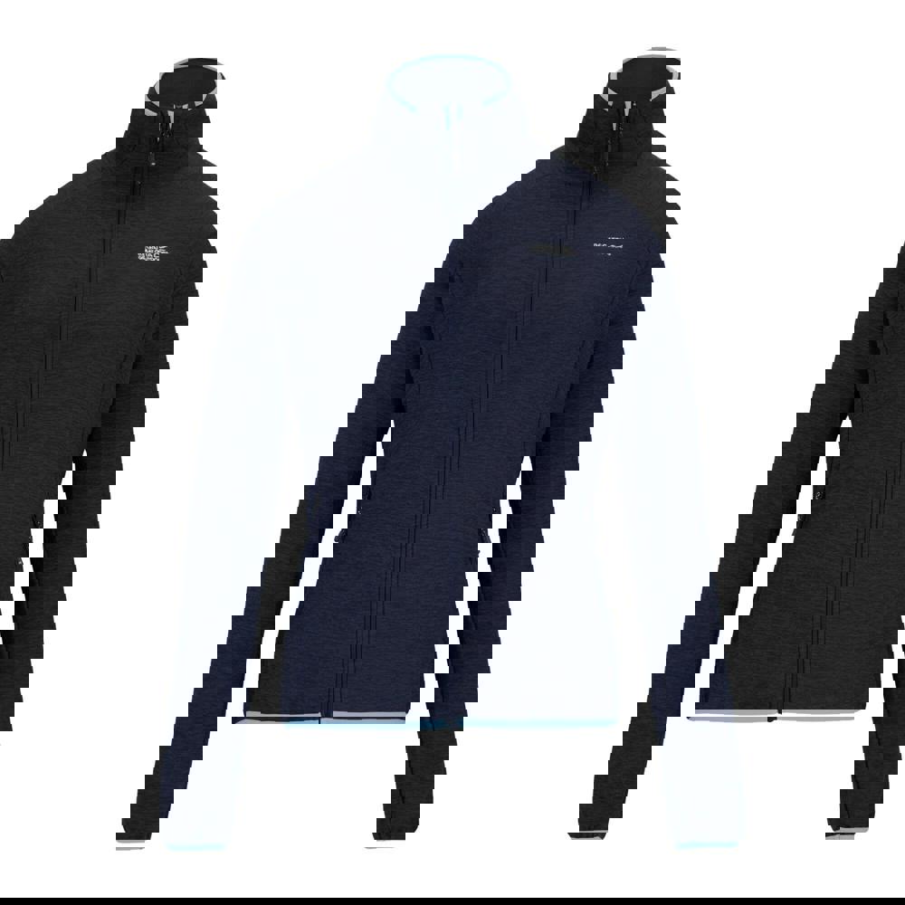 This full zip fleece jacket is made from 70% polyester and 30% recycled polyester, with a brushed inside, soft-touch finish and stretch. In navy blue with a plain design and logo detail, it offers a clean look with contrast trim.