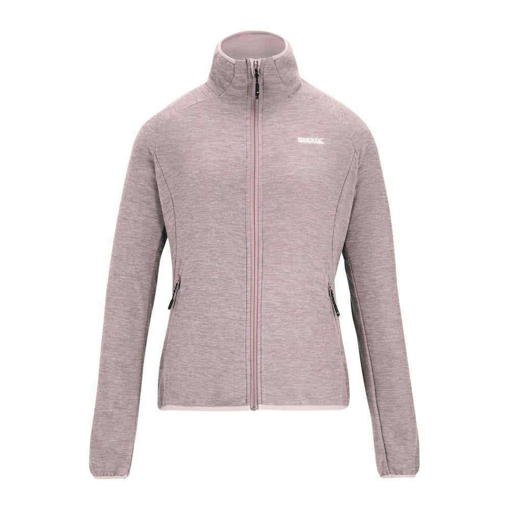 Regatta Rivendell full zip fleece jacket in powder lilac. Made from 70% polyester and 30% recycled polyester, with a brushed inside, soft-touch finish and stretch. The plain design is finished with a logo and contrast trim for a clean, sporty look.