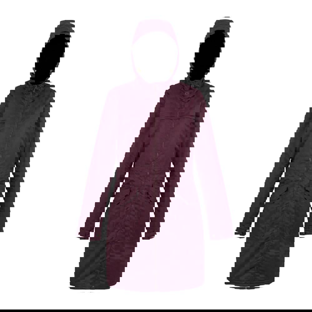 Regatta Romine II is a women’s waterproof parka in fig and black, made from recycled materials. It is crafted from 100% polyester with a wool-effect finish, lightweight Thermo-Guard filling and a taffeta lining. A grown-on hood and long sleeves provide coverage, while sleeve patches add a defined detail.