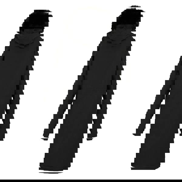 The Sabinka II parka from Regatta is made from polyester with a peached finish and a taffeta lining. In black with a plain design and logo detail, it is hooded with long sleeves and side vents for a clean, practical silhouette.
