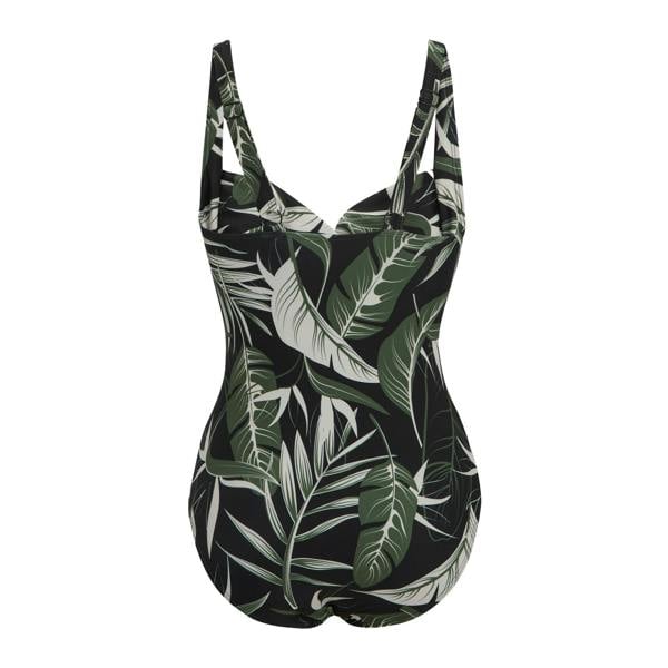 The Regatta Sakari Tropical tummy control one piece swimsuit comes in a dark tropical all-over print with tropical leaves. Made from 85% polyester and 15% elastane, it has a 200gsm construction and a pull-on fastening for a clean finish.