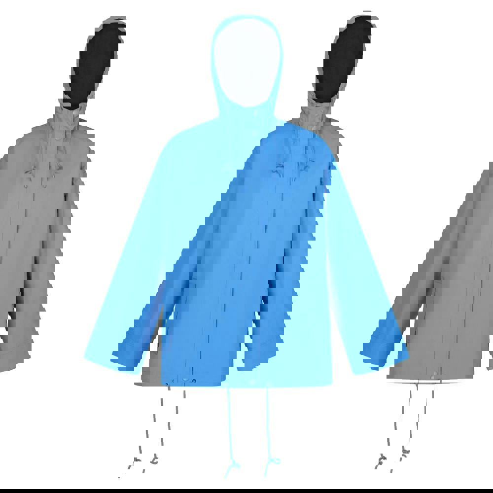 Built for wet-weather wear, this waterproof jacket comes in Sonic Blue with a plain finish and Regatta logo detailing. It is made from 100% polyester Hydrafort material with a contrast taffeta lining and a DWR finish.