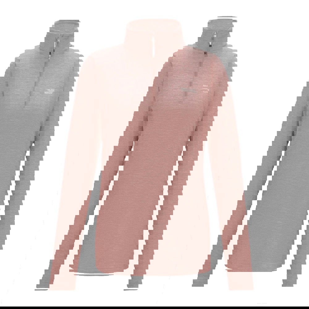Regatta Sweetheart quarter zip fleece top in dusty rose, made from 70% polyester and 30% recycled polyester. The Symmetry fleece has a soft-touch finish with an anti-pill treatment and a brushed lining. A plain design keeps the look clean, while the standing collar and long sleeves provide a neat, practical shape.