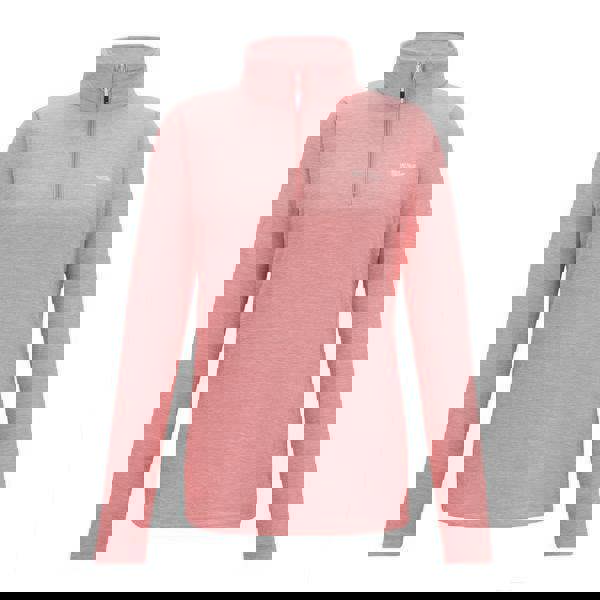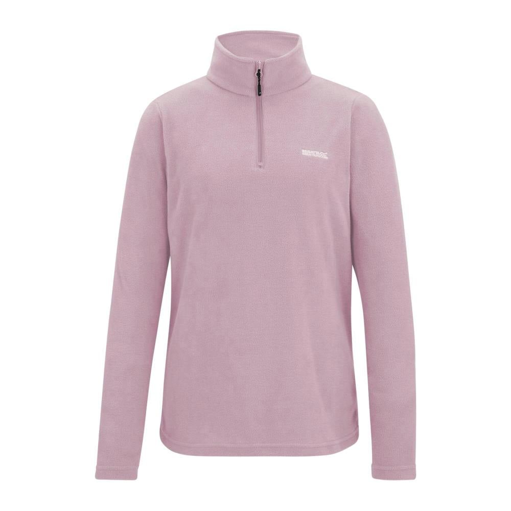 This quarter zip fleece top comes in a plain powder lilac finish with a standing collar and long sleeves. It pulls on easily and fastens with a quarter zip at the neck for adjustable coverage.