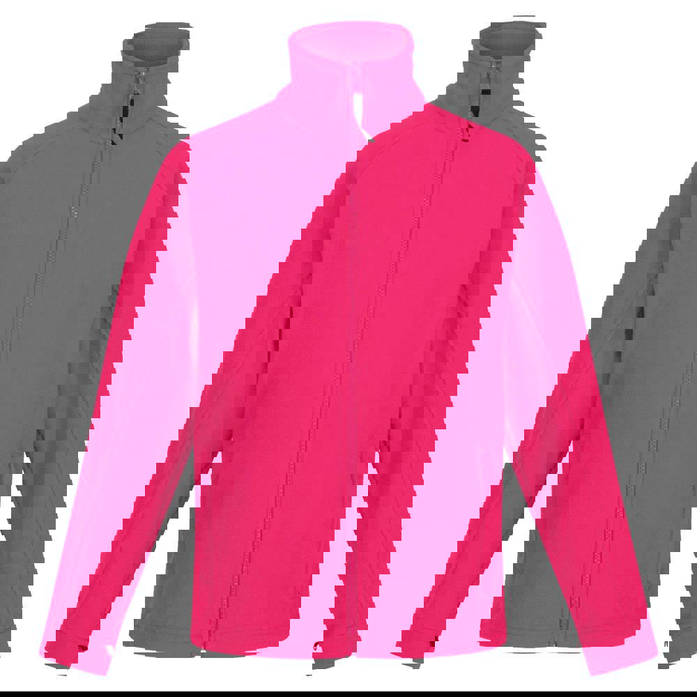 Regatta Women’s Thor III fleece jacket in hot pink with a plain finish and Symmetry fleece construction. Made from 100% polyester, it has long sleeves and a standing collar for a clean, practical shape. A full zip fastening runs through the front, while two zip pockets keep small essentials secure. The hem adjusts with a shockcord for a personalised fit.