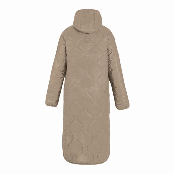 Regatta Triea quilted jacket in soft taupe with a metallic finish. Made from 100% polyamide with a fleece lining and recycled synthetic down filling, it is insulated and finished with Warmloft technology. A durable water repellent finish and lightweight 38gsm construction complete the outer.