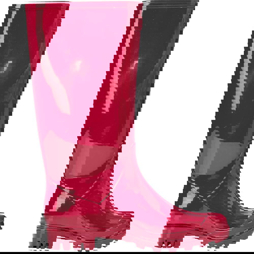 Regatta Wenlock wellingtons in dark cerise with a PVC upper for waterproof protection. A pull-on, pull-off design keeps them simple to get on and off, while an EVA comfort footbed adds cushioning underfoot.