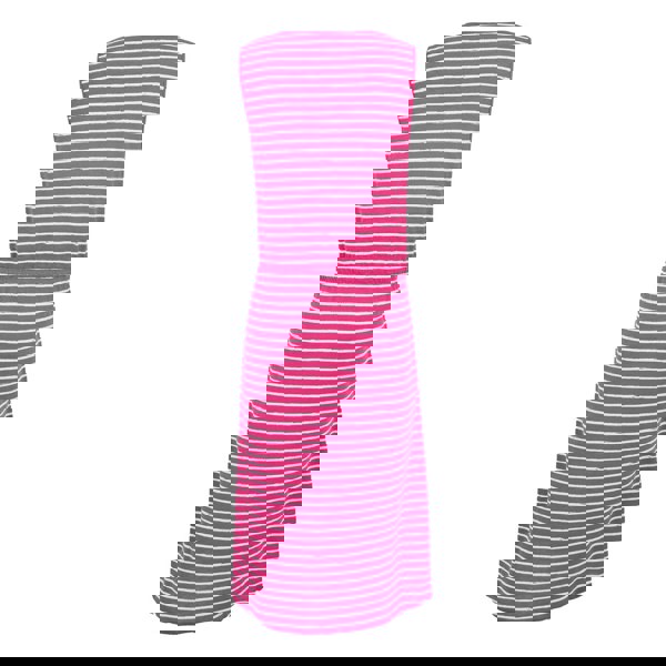 This sleeveless casual dress is made from jersey in a 60% BCI cotton and 40% polyester blend, with a 155gsm weight. It has a contrast stripe design in Pink Fusion/White and a round neckline for a clean, simple finish. The midi length keeps the silhouette easy to wear for everyday styling.