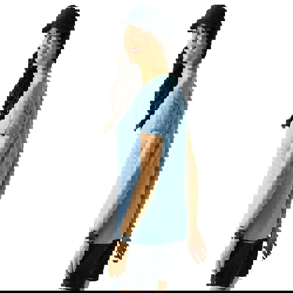Built for active days, the Regatta Fingal Trees Stretch T-Shirt comes in washed denim with a moon and trees design. This women’s short-sleeved style is cut with a crew neckline and made in soft-touch jersey with added stretch for easy movement.