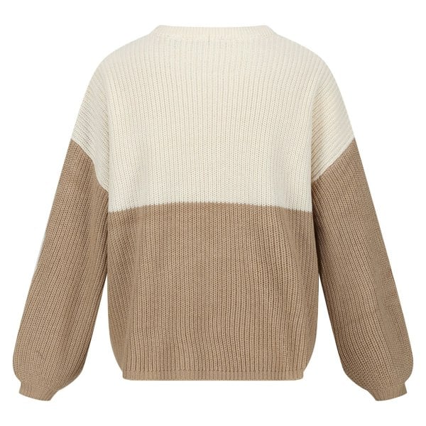 This knitted jumper is made from 100% acrylic and finished in a colour block design. A crew neckline with ribbed detailing keeps the look clean and structured, while the drop shoulder shape adds a relaxed outline. It pulls on easily for straightforward everyday wear.