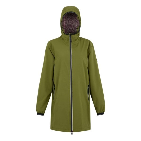 Regatta Lioka waterproof jacket in Nephrite Green, made from 100% polyester and recycled materials. The stretch construction is finished with taped seams and a durable water repellent finish, with Isotex 15000 technology for waterproof and windproof protection.