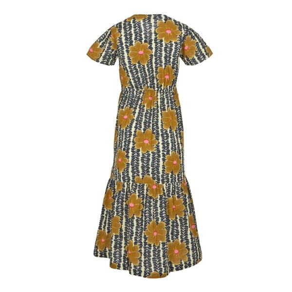This Orla Kiely Lotus tiered midi dress from Regatta is made from 100% cotton poplin with a soft-touch finish. The design uses an all-over floral lotus print with a patterned look and tiered construction, creating a distinctive silhouette for everyday wear.