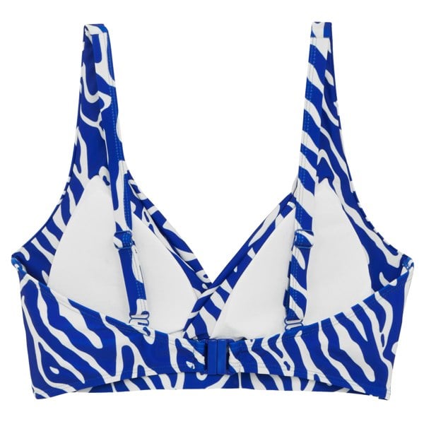 This bikini top is made from elastane, polyamide and recycled polyester, with a seersucker finish and added stretch. It comes in Brightest Blue with an abstract design, and uses a 200gsm material weight.