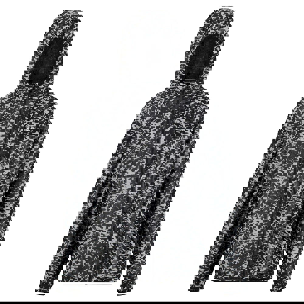This waterproof jacket is made from 100% polyester Isolite material with an ink blot print and logo detail. A hooded neckline and long sleeves create a practical outer layer for wet-weather wear, finished with stretch binding at the cuffs, hood and hem for a neat edge.