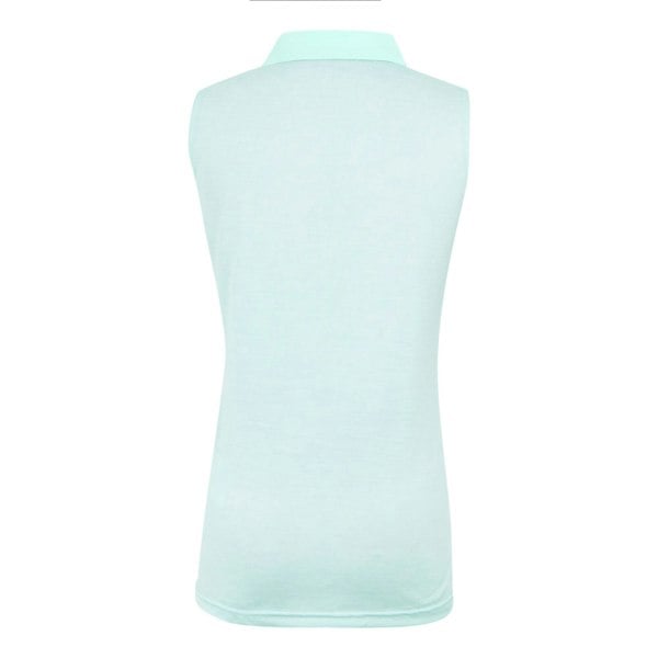 Regatta Tima II sleeveless polo shirt in Icy Morn, made from 100% polyester. The design includes a logo and a turn down collar for a classic polo look. A button fastening sits at the neckline, with a pull over style for easy wear.