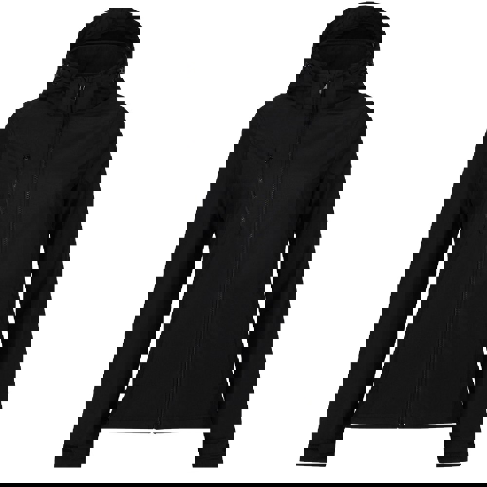 This 3 layer softshell jacket is made from 100% polyester with a woven construction and a plain finish. The 300gsm fabric uses Hydrafort 5000 and XPT technology, with breathable, lightweight, water repellent, waterproof and wind resistant properties. A hooded neckline and long sleeves create a practical outer layer for changeable conditions.