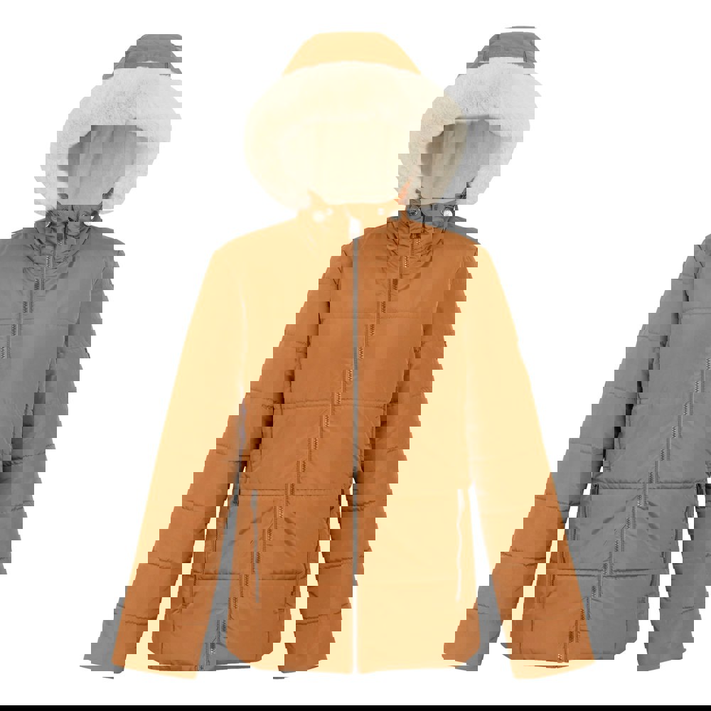 Regatta Winnie quilted jacket in Bran Brown, made from 100% recycled polyester with a midweight feel and a taffeta lining. The high-shine finish is paired with logo detailing and a branded tab for a clean, recognisable look.