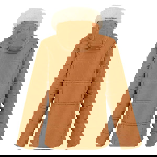 Built with a hooded neckline, it has long sleeves and a full zip fastening. The grown-on hood includes a detachable faux fur trim. Storage is organised with two lower zip pockets and one internal pocket.
