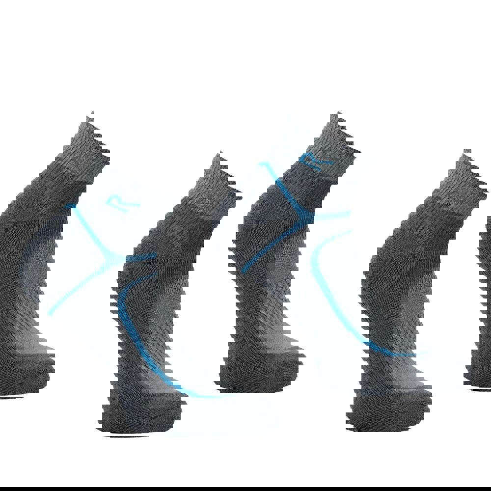 These Regatta women’s Trail Merino Mix ankle socks come in Dark Steel and Storm Blue, with a merino-rich blend for everyday wear. The material mix combines merino wool with polyester, polyamide, elastane and Lycra, and the construction includes instep panels and a flat toe seam. A ribbed cuff completes the ankle-length profile.