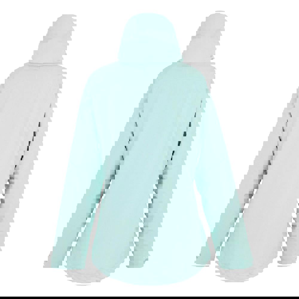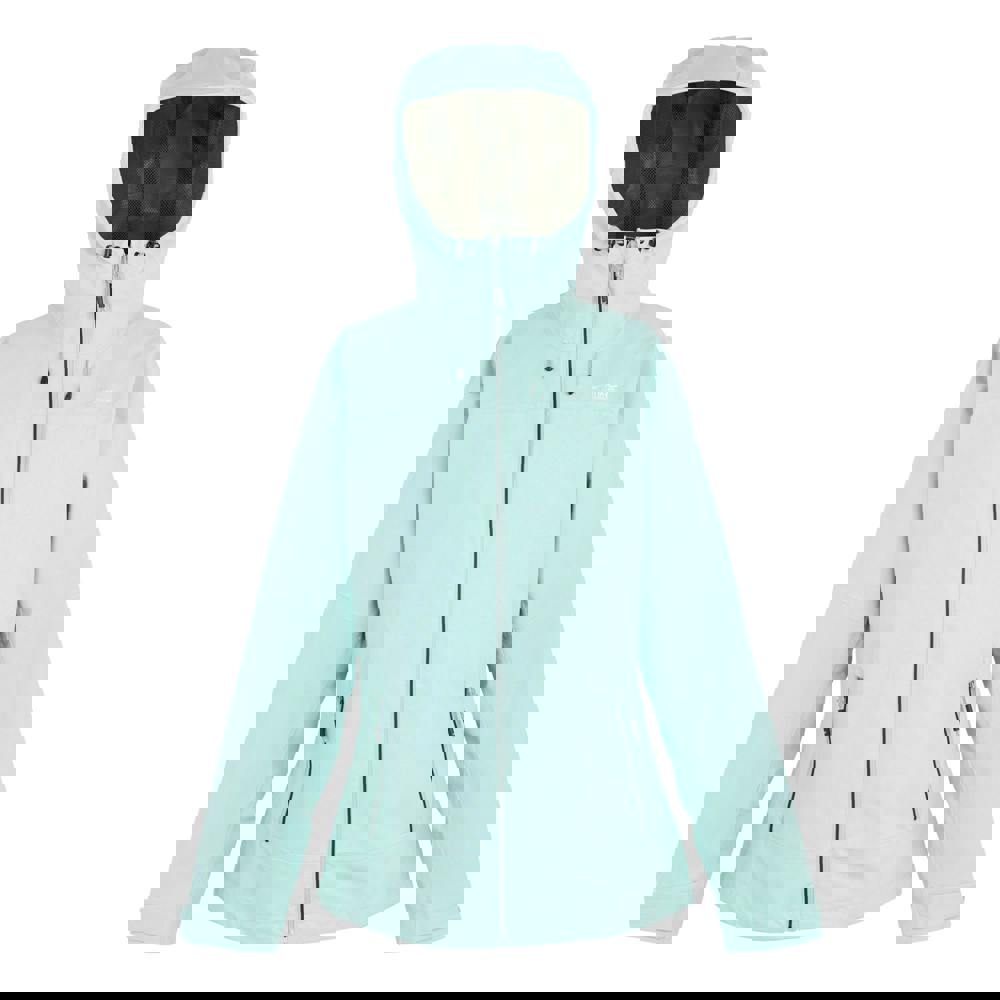 The hooded neckline includes a standing collar and a grown-on technical hood with toggle adjustment and a wired peak. Long sleeves are cut with articulated shaping and finished with adjustable cuffs using a hook and loop strap. Storage is organised with four side pockets and a zipped chest pocket, while an adjustable shockcord hem and drainage channel complete the practical design.