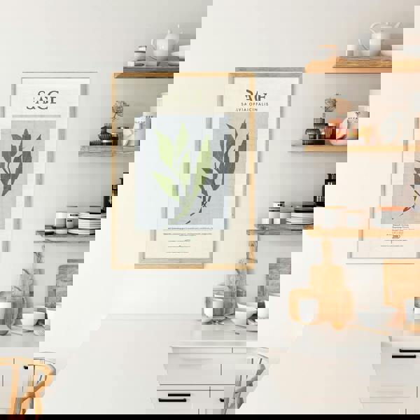 An modern illustrated sage poster for your kitchen containing supporting notes of the medicinal, aromatic and culinary uses.
