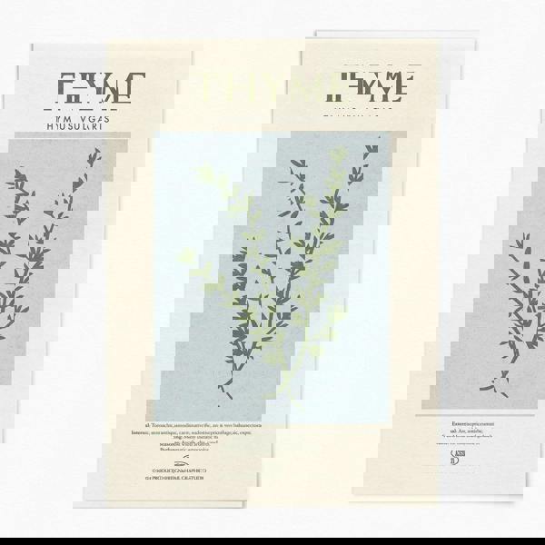 An modern illustrated thyme poster for your kitchen containing supporting notes of the medicinal, aromatic and culinary uses.