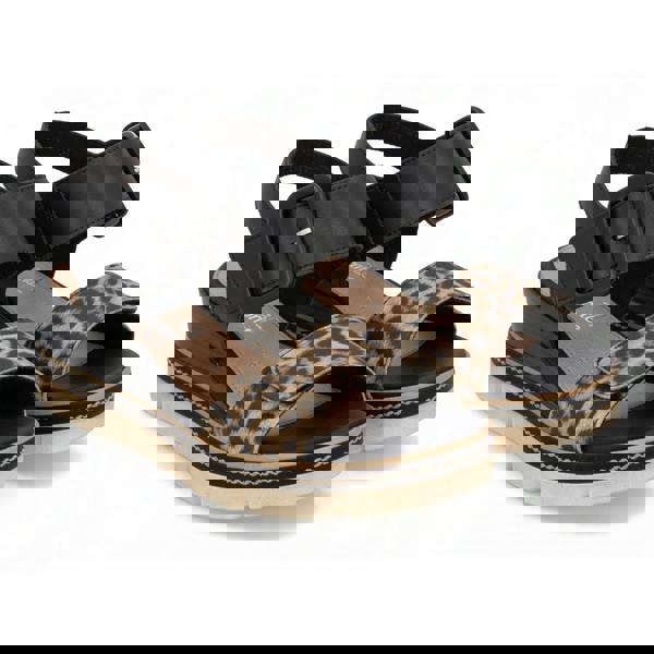 Wedge sandals with a medium heel, lightweight leather upper, leather and synthetic lining, polyurethane sole, round toe, regular width, and buckle fastening, weighing 600g