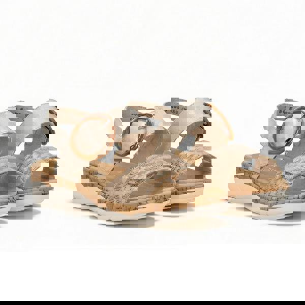 Ankle strap sandals with leather upper, velour lining, and thermo rubber sole. Features adjustable strap, open toe, low heel, and touch fasten closure for comfort and fit