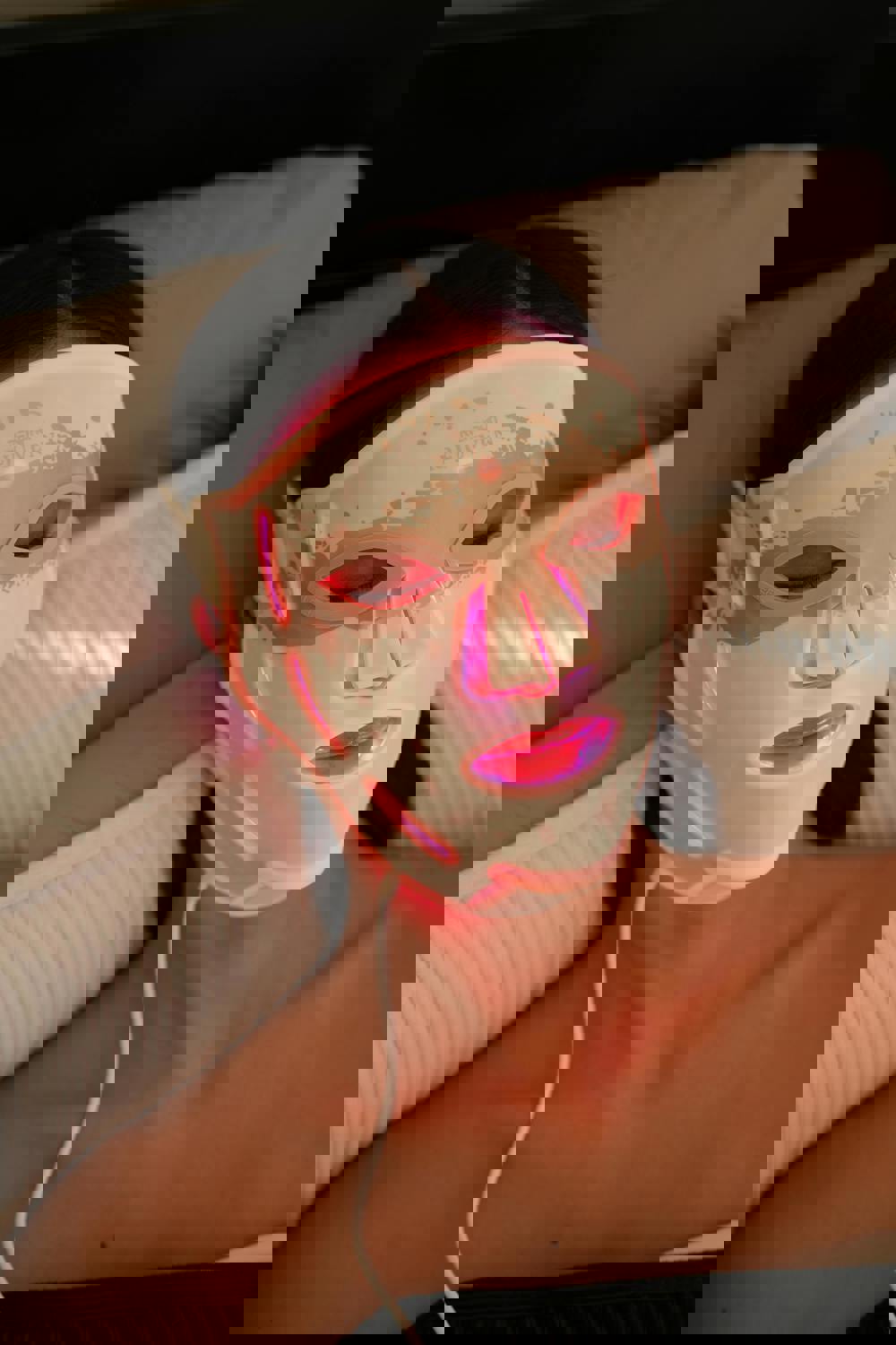 Red light (600–700 nanometres) is described as penetrating deeper to stimulate collagen production and improve blood circulation, supporting skin healing and helping to diminish dynamic and static wrinkles such as forehead lines, crow’s feet and nasolabial folds. Blue light (400–500 nanometres) targets the surface to kill acne-causing bacteria, while green light (500–570 nanometres) is stated to reduce fine lines, nourish ageing skin and accelerate wound healing. Infrared light (850 nanometres) is described as reducing wrinkles and accelerating wound healing. A combined R + G + B + NIR mode is positioned as a versatile option for complex concerns including dull, uneven skin tone, wrinkles and acne.