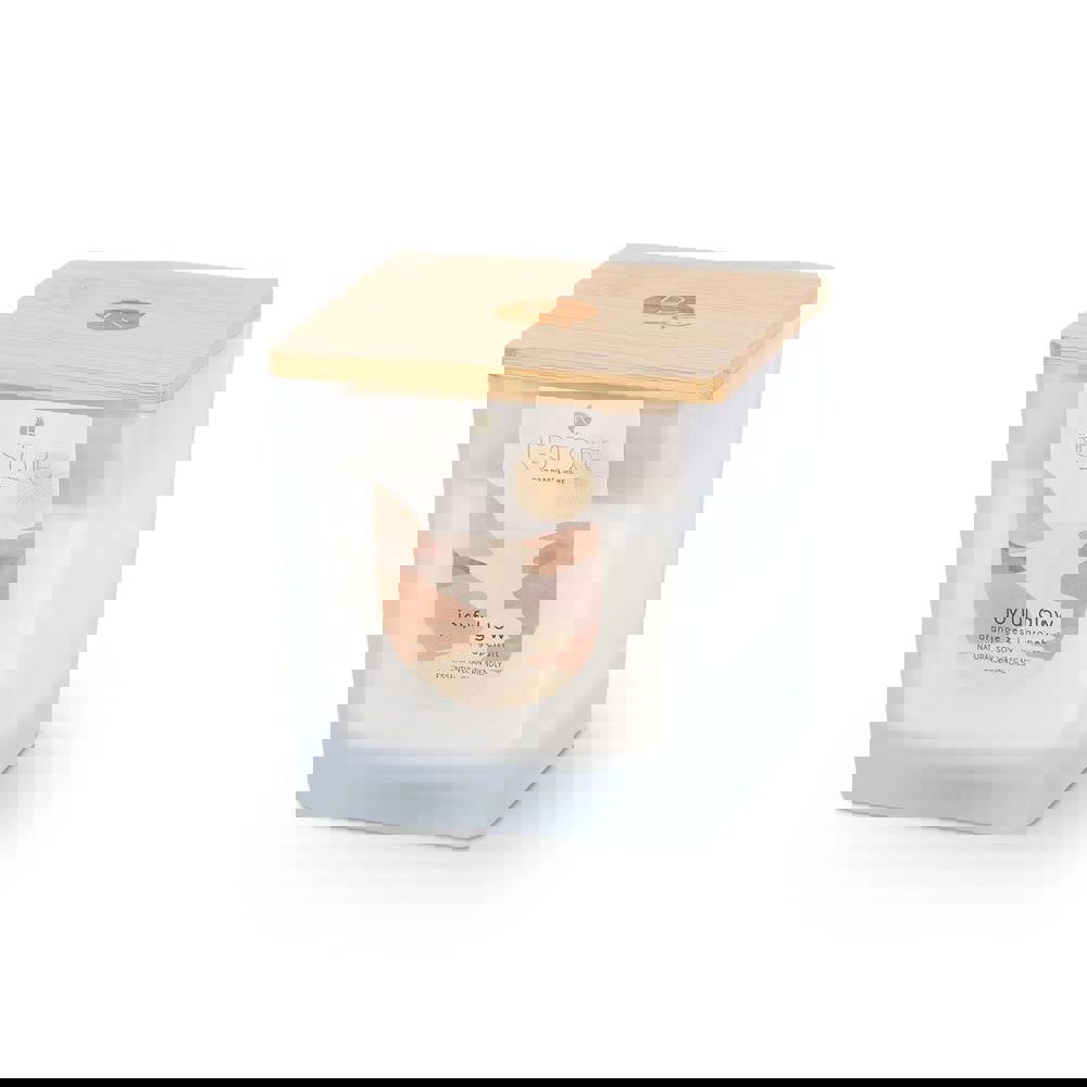 Poured with care using a vegan-friendly, sustainable soy blend wax, this candle is finished with FSC-certified whisper wicks for a gentle, comforting crackle as it burns. A bamboo wooden lid helps preserve the candle’s purity between uses and can also be used as a coaster.