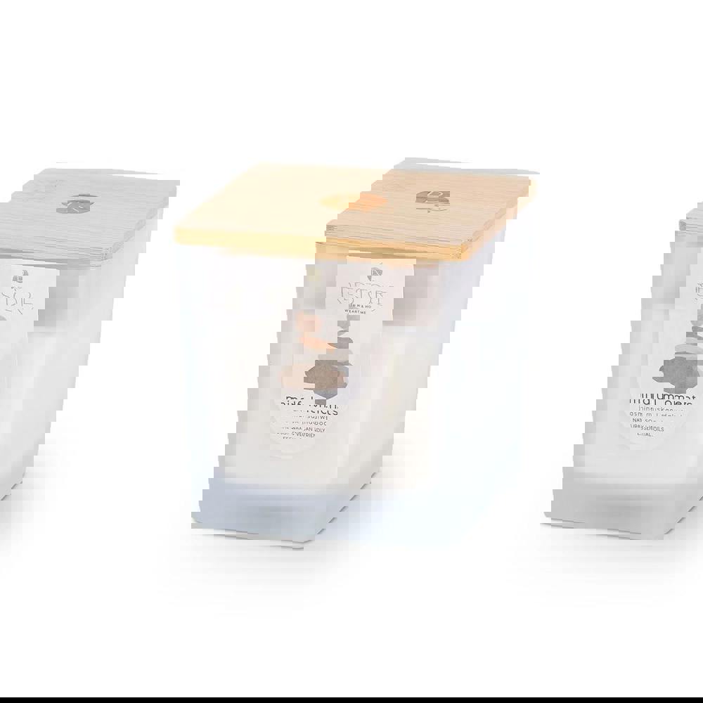 Poured with care, this vegan-friendly candle is made with a sustainable soy blend wax and infused with natural essential oils to help set a soothing ambience. FSC-certified whisper wicks add a gentle, comforting crackle as it burns, while the bamboo wooden lid helps preserve the candle’s purity and can also be used as a coaster.