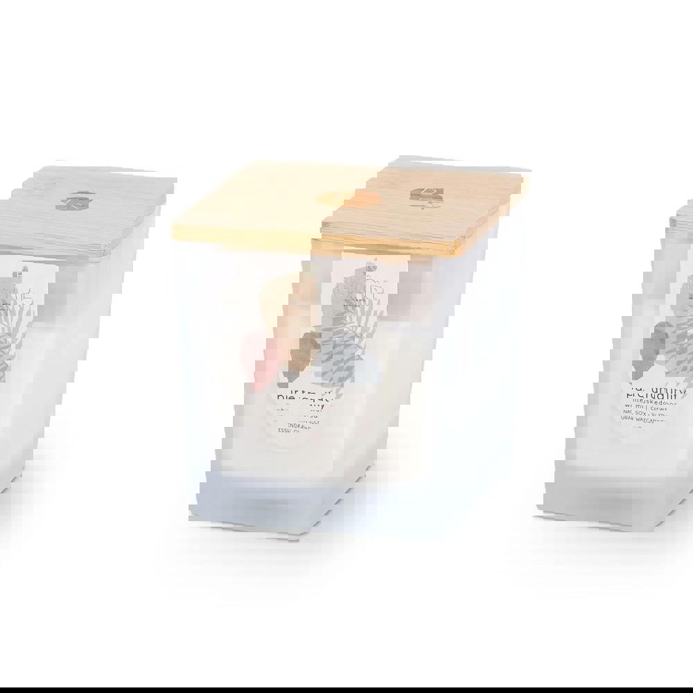Poured with care using a vegan-friendly, sustainable soy blend wax, each detail is considered for a more mindful burn. FSC-certified whisper wicks add a gentle, comforting crackle, while the bamboo wooden lid helps preserve the candle between uses and can be used as a coaster when lit.