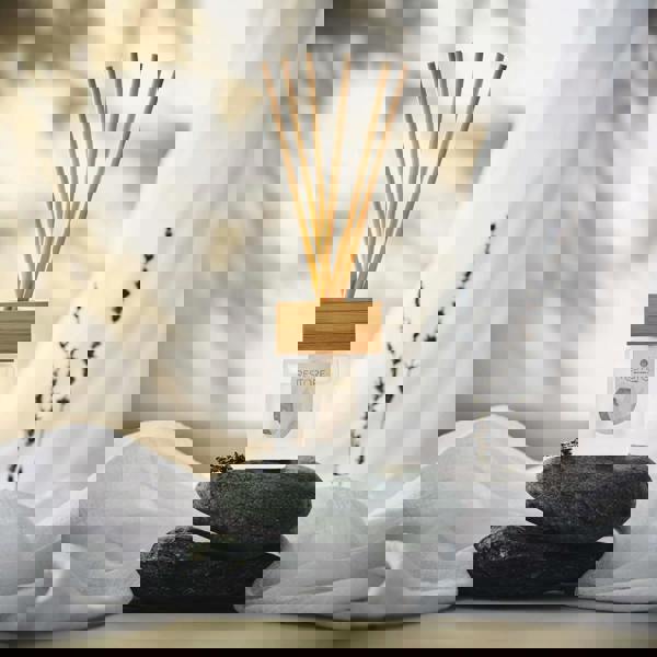 Elevate your wellbeing with a Restore Reed Diffuser, thoughtfully designed to bring serenity to your space. Herbal aromas and woody warmth encourage deep relaxation, to bring a soothing atmosphere that's perfect for quiet reflection. Encased in elegant frosted glass with a contemporary silhouette and finished with a bamboo wooden lid to add a touch of natural harmony to any room. Choose from a selection of fragrances infused with natural essential oils, each crafted to promote balance and relaxation. Beautifully presented in sustainable kraft packaging, they make the perfect gift for a loved one -or a well-deserved treat for yourself!